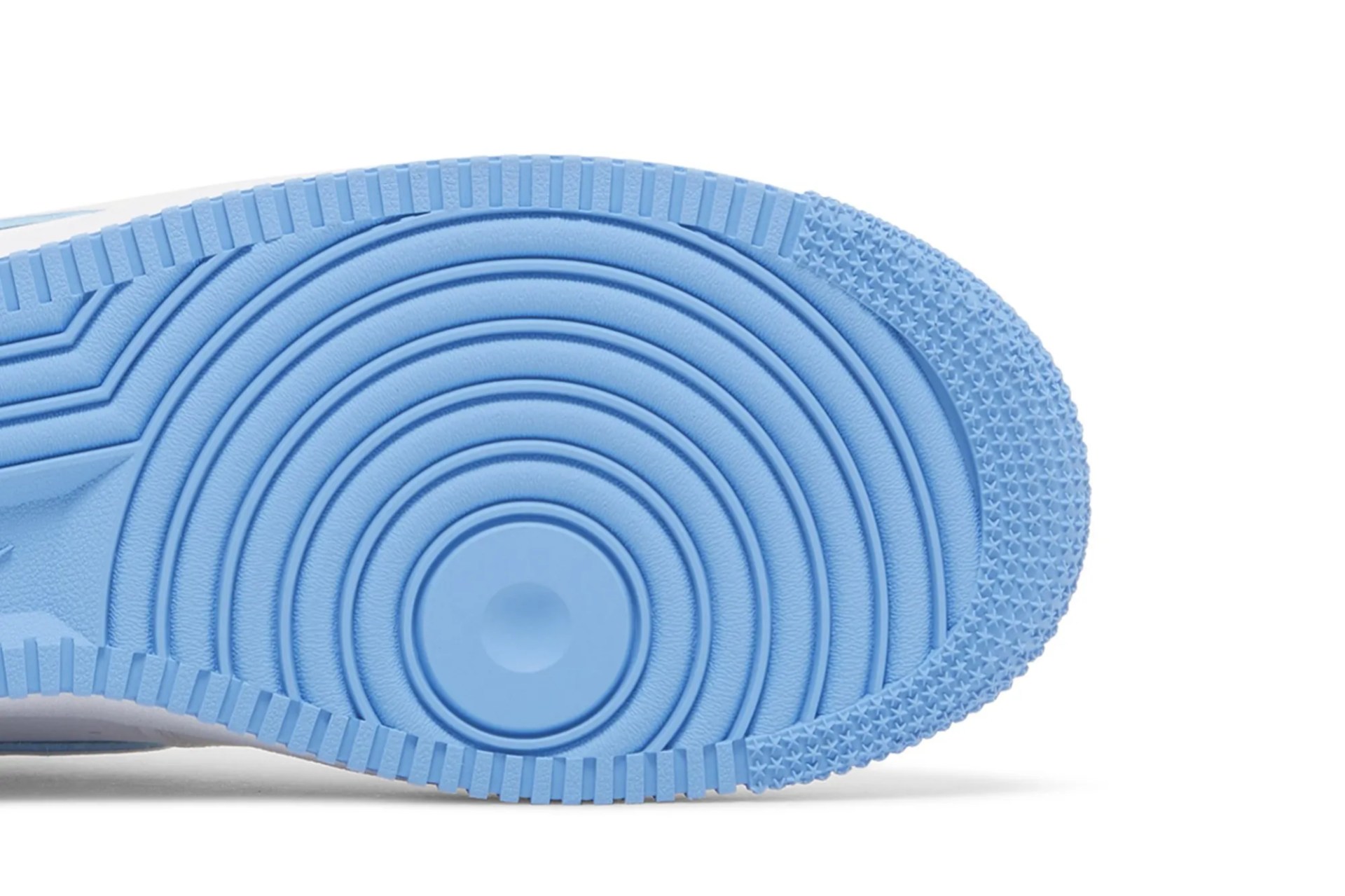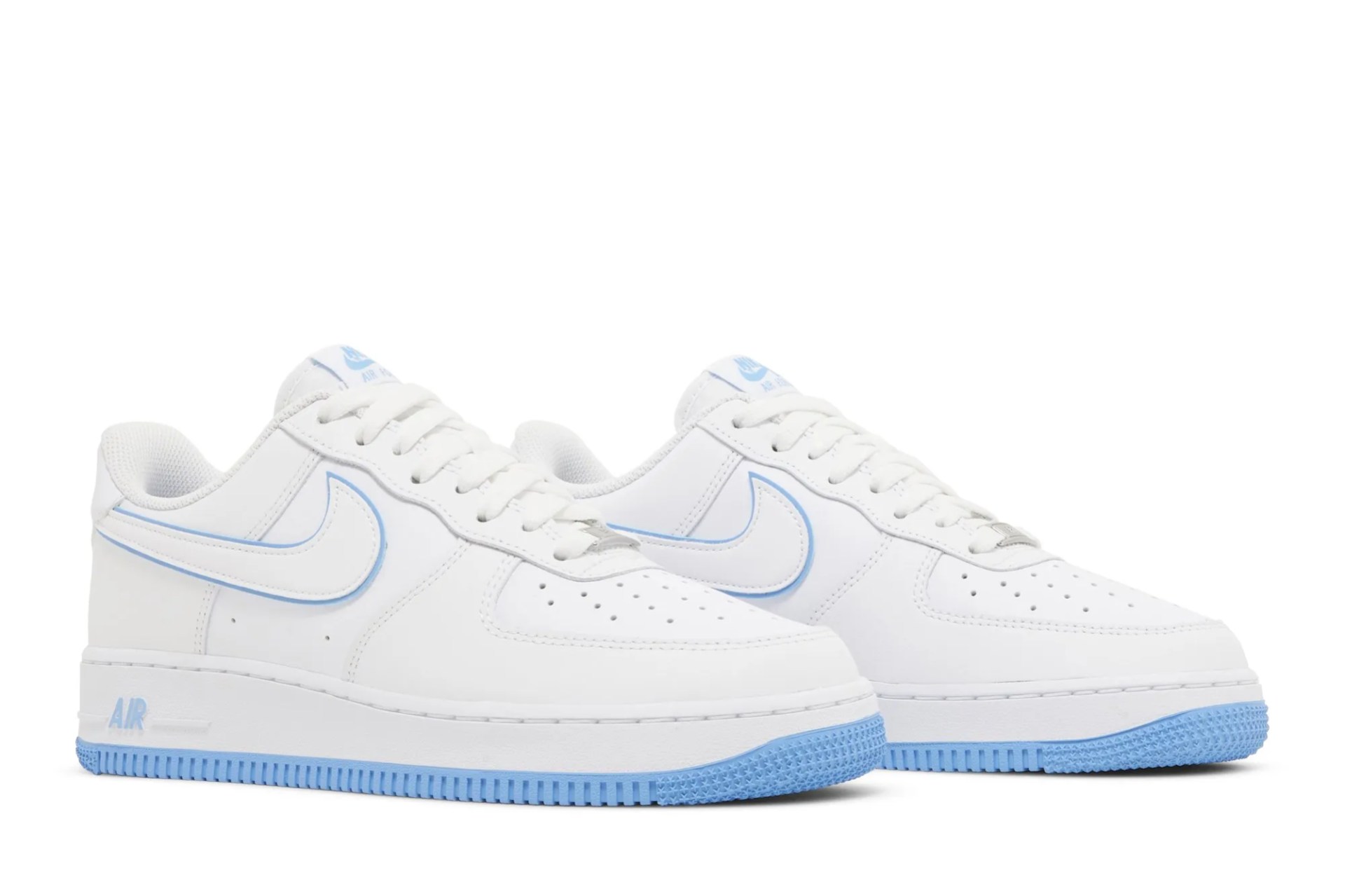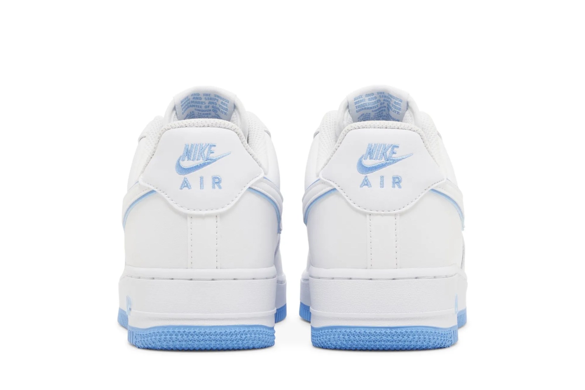 The Nike Air Force 1 ’07 ‘White University Blue’ presents a classic colorway of the retro hardwood icon. The low-top carries a pristine white leather upper, accented with a tonal Swoosh outlined in blue. The color is repeated on the woven Nike tongue tag and the Nike Air logo embroidered on the back tab. Undergirding the sneaker is a durable cupsole, highlighted by white sidewalls and a blue rubber outsole. An encapsulated Air-sole unit in the heel provides lightweight cushioning.