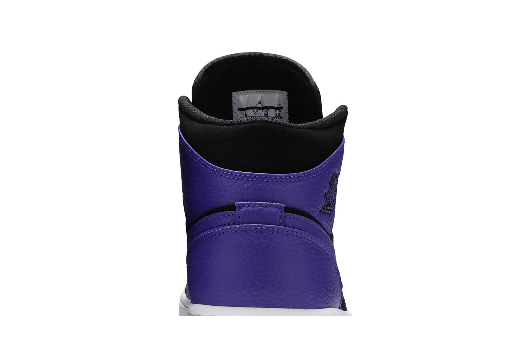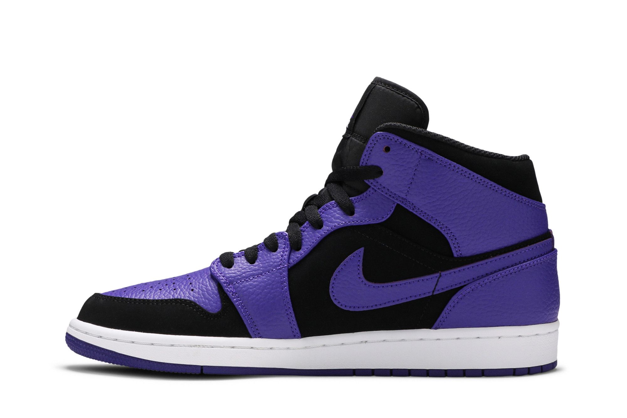 What our expperts think is the standout feature of the Jordan 1 Mid Black Dark Concord is its classic design elements with a contemporary twist in a vibrant black and Dark Concord color, adding a pop of contrasting hue to the overall design. The Air Jordan 1 Mid Black Dark Concord was released on December 1, 2018, and sold for a retail price of $110.
