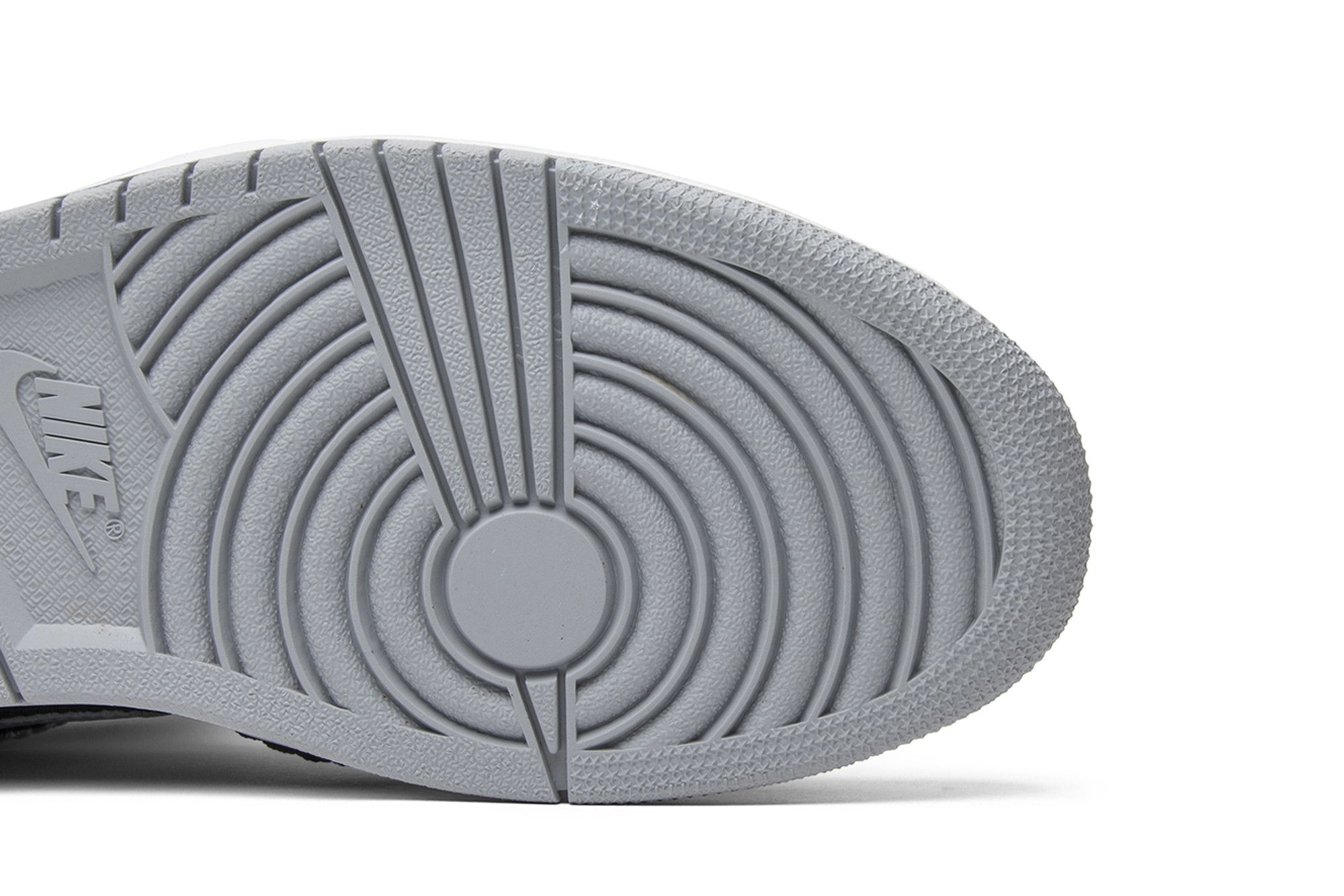 The Air Jordan 1 Retro High Flyknit Shadow sneaker is constructed with Flyknit material throughout its upper. The Flyknit upper’s color scheme is a combination of Medium Grey and black. This color blocking system was adopted to mimic the iconic OG Shadow 1s. The design also features a leather detailing on the side Swoosh logo in in Wolf Grey colors. The color is continued on the heel, perforated toe-box for aeration purposes and the outsole. Completing the design is a white rubber midsole for an impact absorption, and grey rubber outsole for traction and grip on various surfaces.