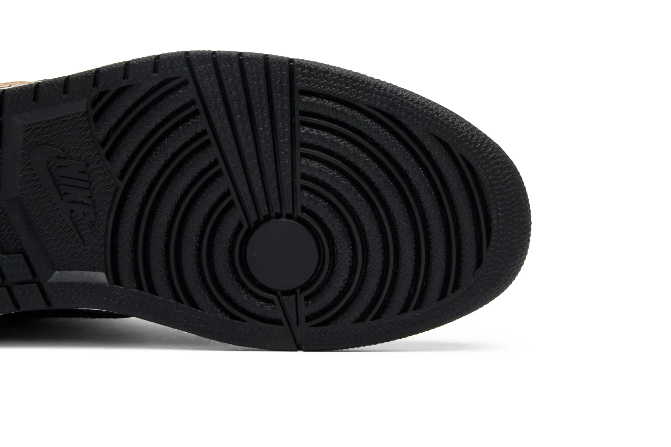 The sneaker shoe, released in black and Black-Metallic Gold colors, details an almond toe, a logo mark at the tongue, a rubber sole, a decorated color block design, a cushioned ankle, and a Nike Signature. The shoe is made from 100% rubber, polyester, patent leather, and leather and has labeled insole, white extra laces, and gold extra laces.