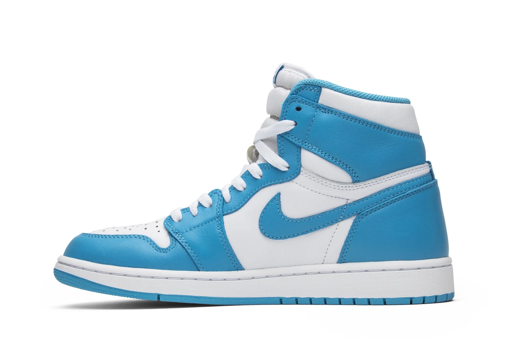 Released in 1985, this Air Jordan 1 Retro High OG ‘UNC’ was retroed as part of the Jordan Brand’s Holiday 2015 retro pack. Featuring a blue and white colorway, this retro calls back to Jordan’s college days at the University of North Carolina where he won the 1982 NCAA National Championship as a freshman. The shoe features classic branding details like the Nike Air logo on the tongue, the Air Jordan ‘Wings’ logo, and a clean heel. The Jordan Brand Holiday 2015 pack also included the Air Jordan 8 Retro ‘Aqua’, Air Jordan 8 Retro ‘Chrome’, Air Jordan 8 Retro ‘Threepeat’, Air Jordan 7 Retro ‘Sweater’, and Air Jordan 14 Retro Low ‘Laney’.