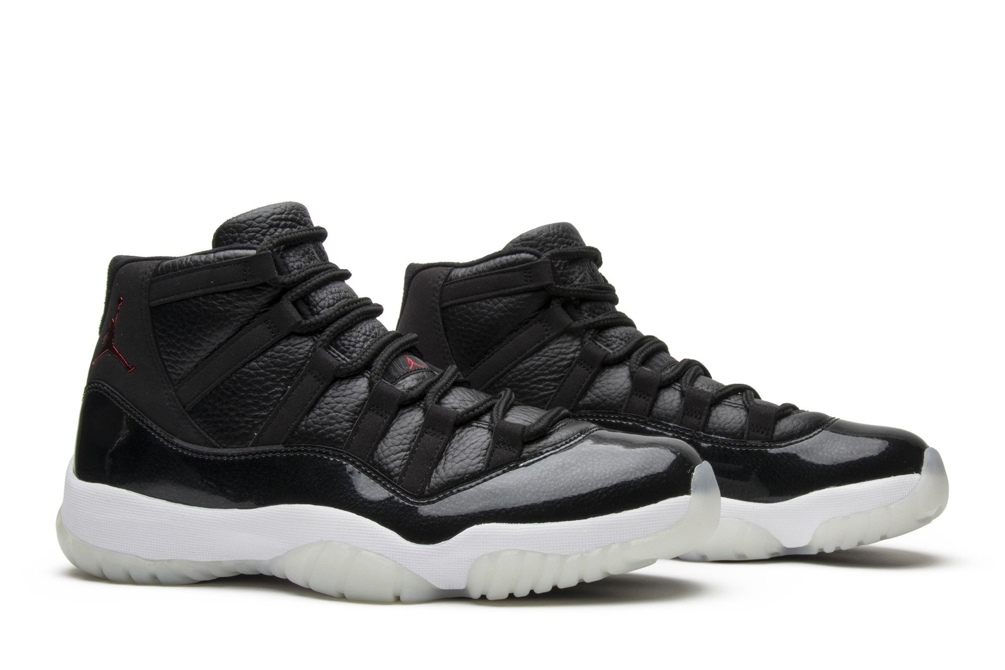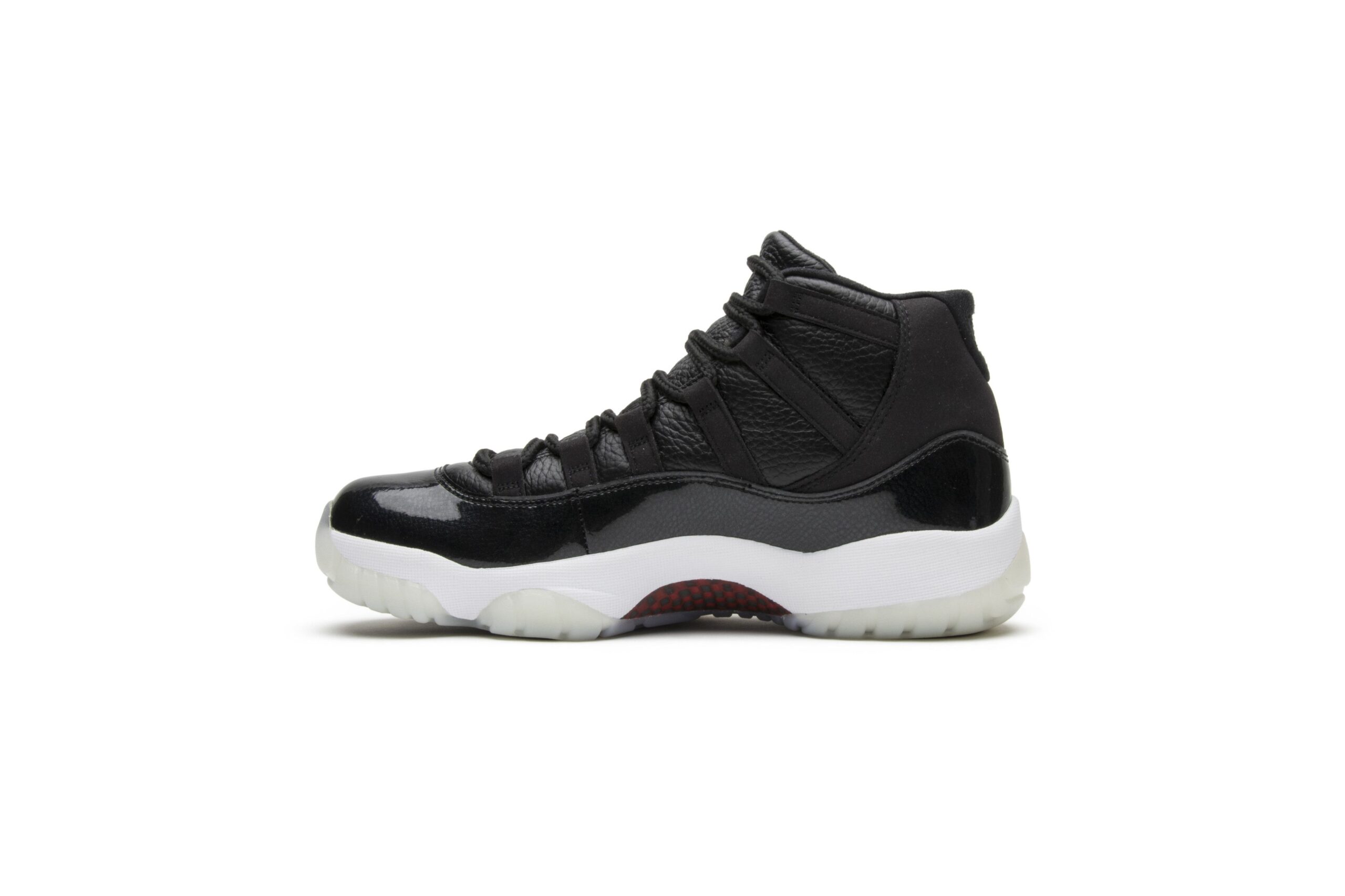 The Air Jordan 11 Retro 72-10 introduced a minimalist design with transparent outsole, clean white midsole, and the patent mudguard that defines the Jordan 11 silhouette.