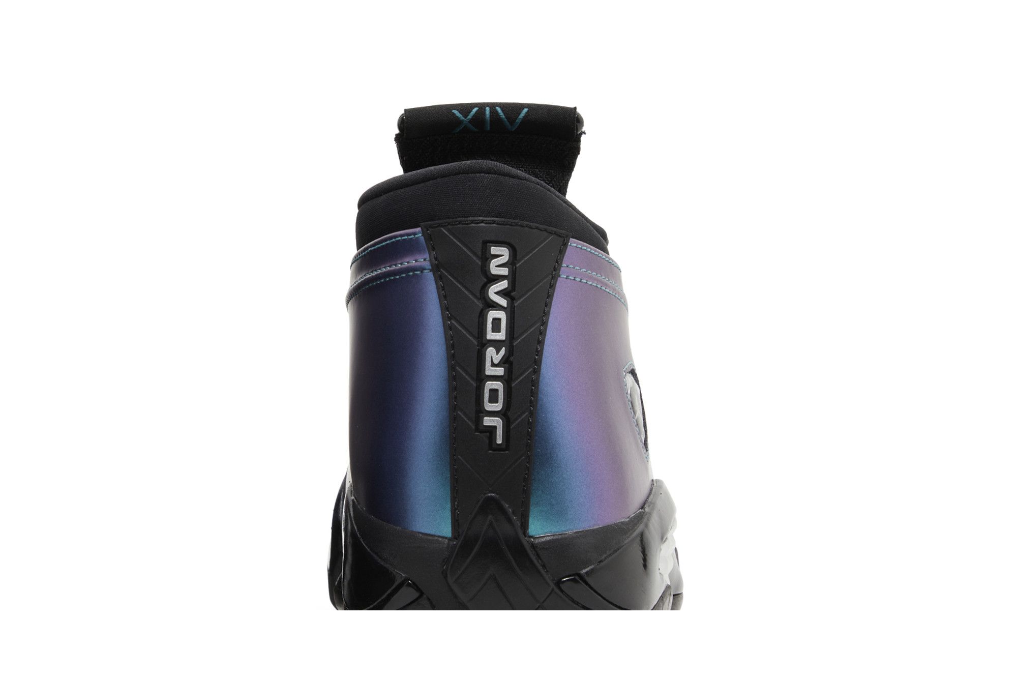 The Jordan 14 Retro Love Letter (Women's) paints the Jordan 14 in a shiny metallic upper with hints of Mineral Teal and Metallic Silver.