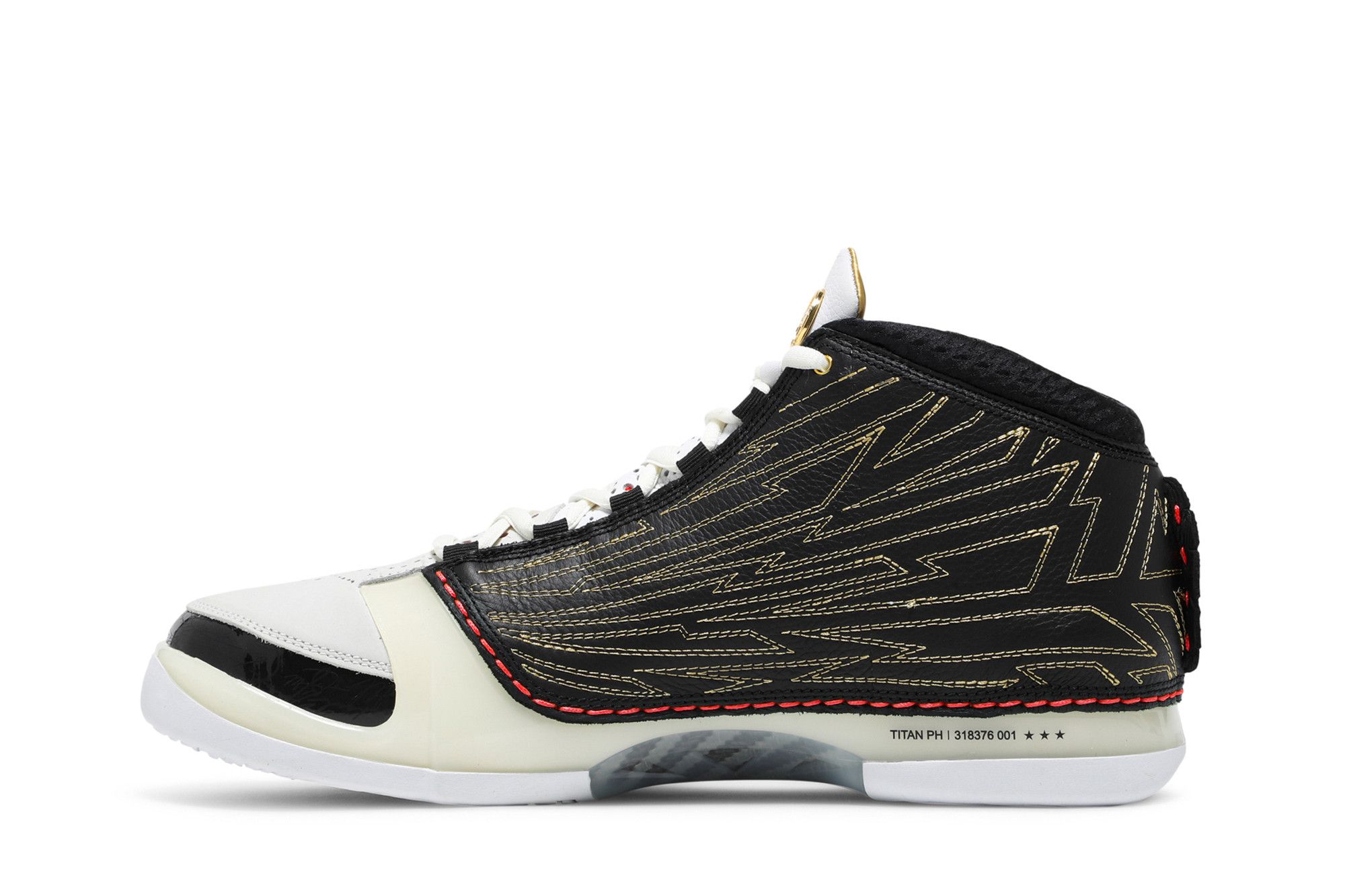 Filipino retailer TITAN reimagined the design of the Air Jordan 23 that was originally released in 2008 to create the Jordan 23 TITAN. It was the first sneaker that Jordan Brand and TITAN agreed to put out together.TITAN didn’t change the structure of the Jordan 23 while working on it. They did, however, tinker with its design quite a bit to give it a fresh look. The retailer replaced the argyle pattern on the upper that used to exist with a lightning bolt-like pattern set against a backdrop of black leather. They also added white leather to both the tongue and toe box. Red stitching is used between the contrasting leather colors to give some pops of color throughout the shoe.What our experts like the most are the golden Jordan and TITAN logos on the shoes.
