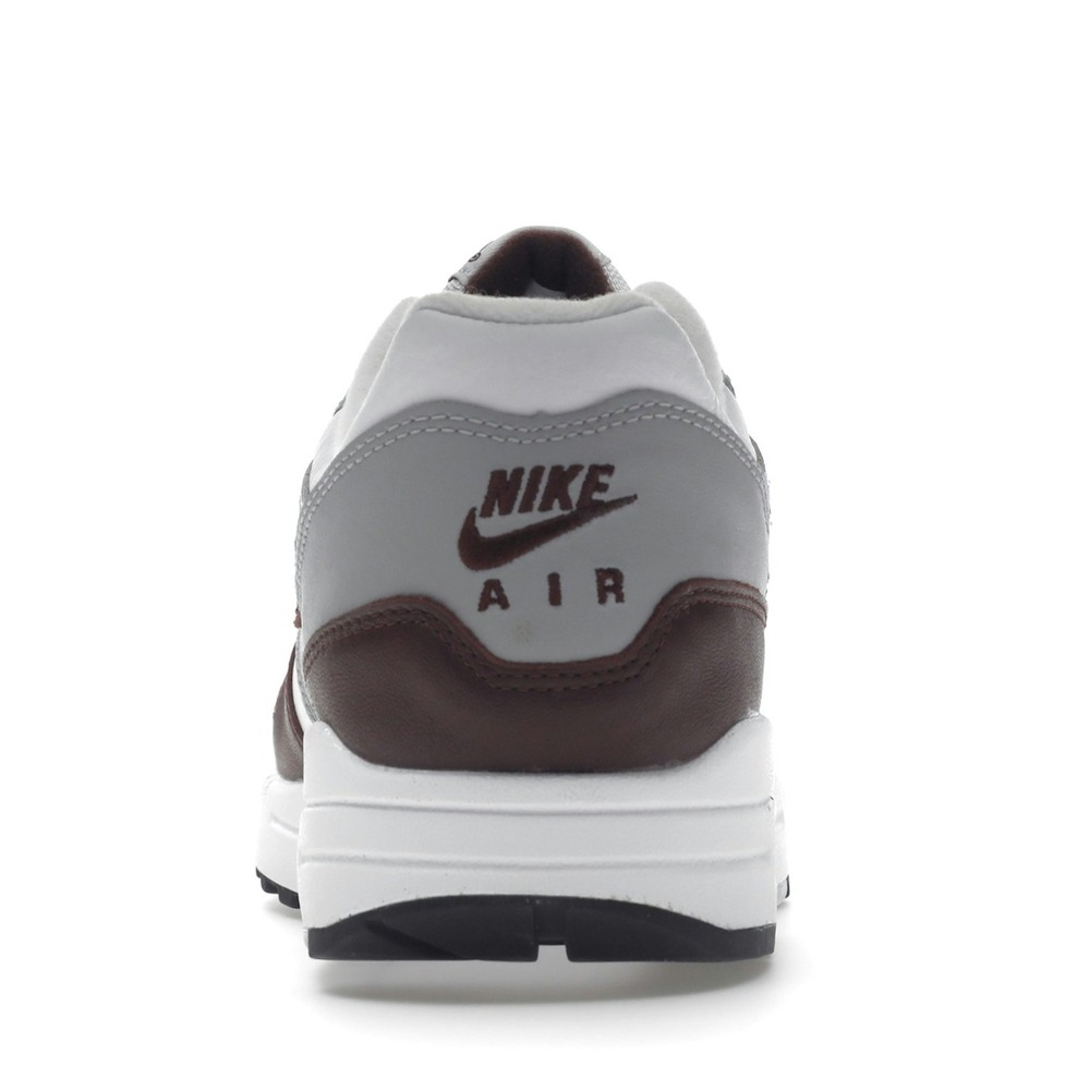 The Mystic Dates' upper is made of a combination of materials, including leather, suede, and mesh. The colorway features shades of white, Wolf Grey, black, and the "Mystic Dates" hue, which is a copper-like shade that hovers between brown and bronze. The design is accented by a white Nike swoosh and a black heel tab with the Nike Air logo. The midsole boasts Nike's signature Air technology and the outsole is made from rubber to offer grip.