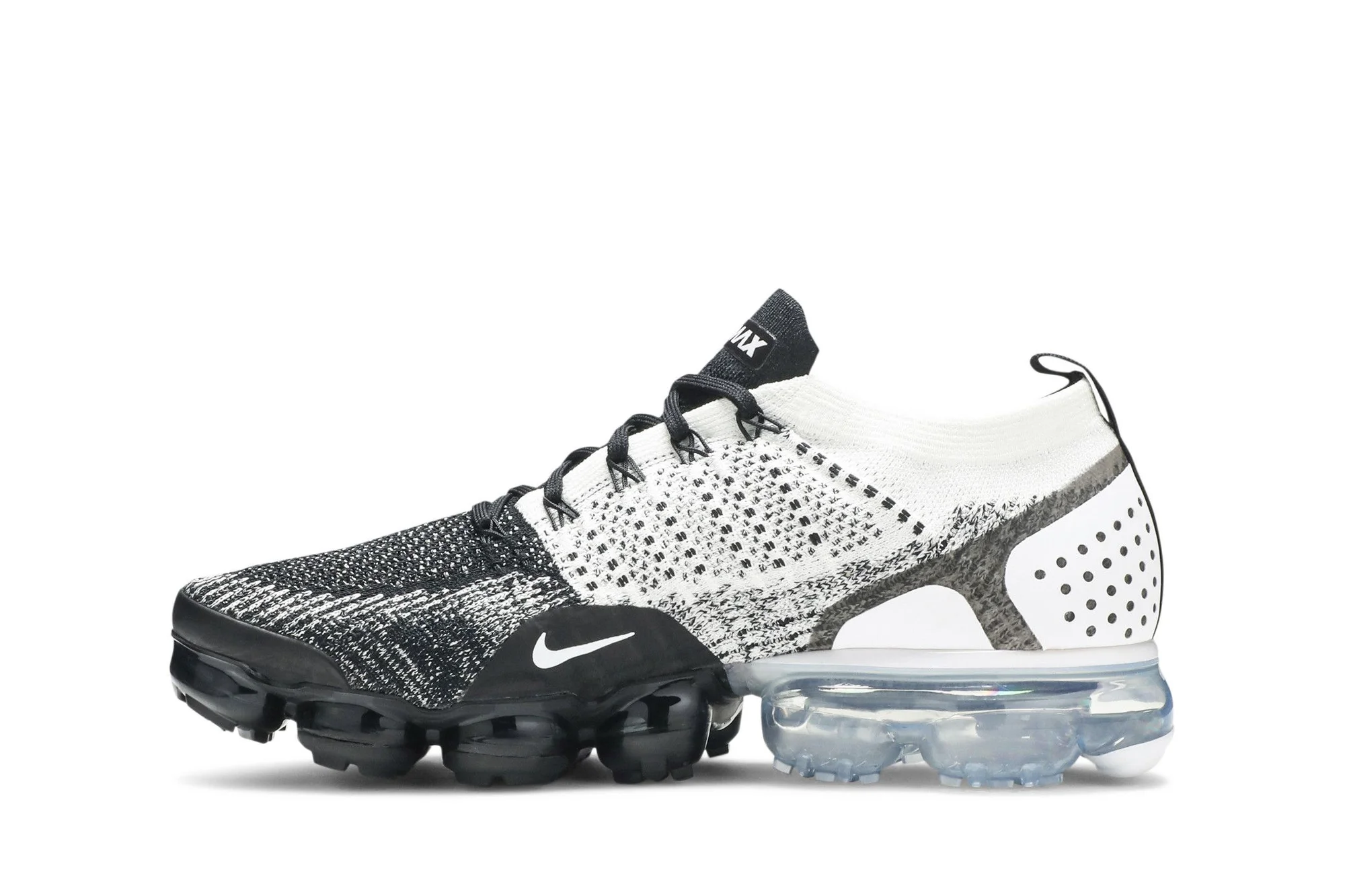 The Nike Air VaporMax 2 Flyknit sneaker advanced footwear design when it positioned the Air tech directly underfoot. In this 'Orca' iteration, we find the beloved color scheme utilized in the upper's Flyknit, collar and branding. The medial side, its Flywire and the perforated heel panel contrast the lateral view, while an opaque forefoot and translucent heel continue the yin and yang aesthetic. Experience all-day comfort and timeless style with this versatile Nike sneaker, engineered to keep up with your every move. Blending iconic design with responsive cushioning, it’s perfect for everything from morning commutes to weekend adventures. Whether you’re dressing up or keeping it casual, this sneaker delivers the perfect balance of performance, durability, and everyday style—so you can stay sharp, confident, and comfortable all day long.