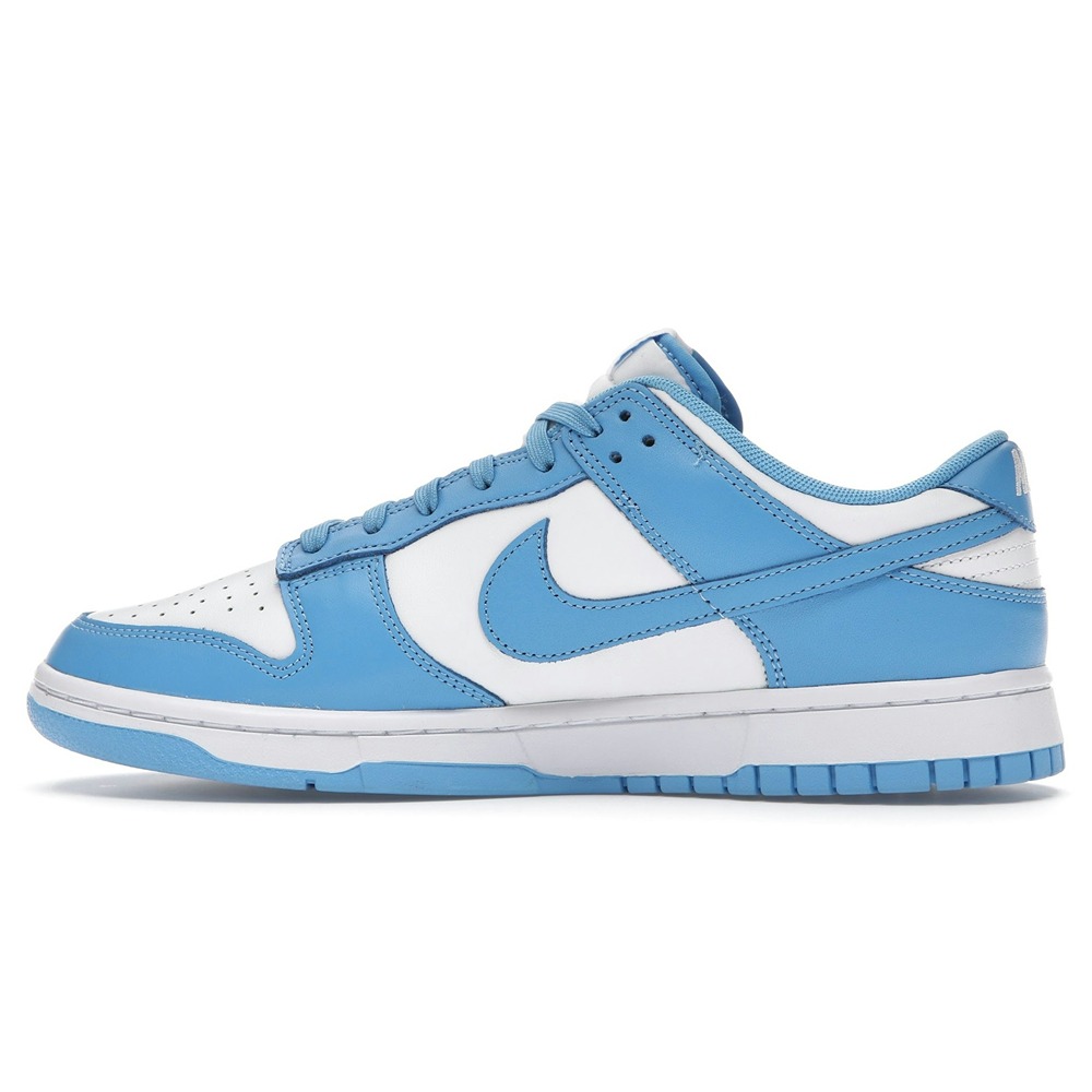 Nike Dunk Low "University Blue"’s shade marks the overlays as what everyone expected, turning the Swoosh, toe, and heel into firm Tar Heels supporters. Below, the foundation is dressed in white neutral, maintaining the classic two-toned aesthetic. The branding on the other hand, while complements in tone, switch things up a bit as their embroideries are subtly degraded. SKU: DD1391-102 Release Date: Jun 24, 2021 Color: White/University Blue/White