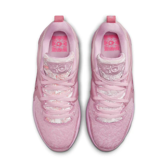 The Nike KD 15 NRG Aunt Pearl honors a lasting influence in Kevin Durants life. Through several iterations of KDs signature line, Nike has paid homage to the athletes late Aunt Pearl with a tonal pink finish and unique details. This pair features a floral print throughout the upper, built with a combination of mesh, suede and molded TPU. Crushed velvet tongues are marked with KD patches, while Aunt Pearl is inscribed on the right pull tab. Performance benefits include a full-length Cushlon midsole and a visible Air Zoom Strobel unit.