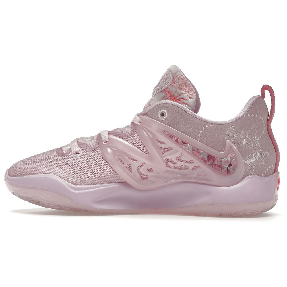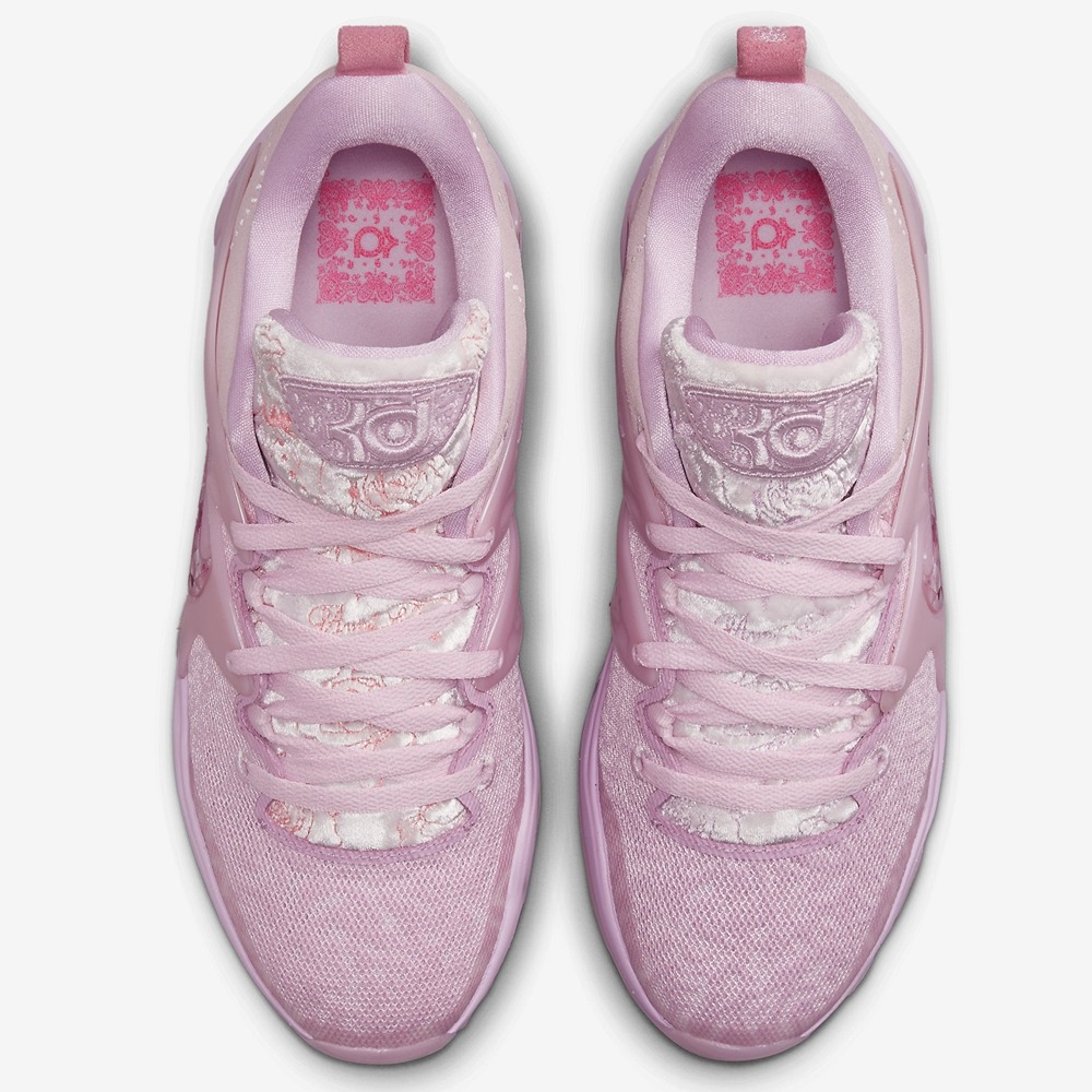 Nike proudly presents their newest release from the KD 15 collection, the Aunt Pearl EP Pink edition. Built for performance and style, this sneaker pays tribute to one of the most enduring influences in Kevin Durant’s life - his late Aunt Pearl. Featuring a combination of mesh, suede, ribbed TPU materials, and a floral print atop the upper, these kicks stand out. The crushed velvet tongues feature special KD patches while ‘Aunt Pearl’ writing adorns the right pull tab- a charming reminder of her bond with her nephew. Quality is found within every element as seen with full-length Cushlon midsoles and visible Air Zoom Strobel units which ensure comfort and support during each step and jump. Own your own pair today to combine exclusive design, enough cushioning for all occasions, all while honoring the memory of Kevin Durant’s beloved Aunt Pearl!