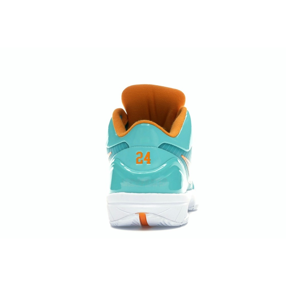 Nike Basketball and Undefeated have come together to celebrate Kobe Bryant's birthday with the Nike Kobe 4 Protro Undefeated "Spurs", now available on StockX. Nike and the LA-based streetwear and sneaker one-stop shop Undefeated have been long time collaborators, so it only made sense for one LA legend to honor another with a special edition Kobe 4 for this years Mamba Day. These shoes are a part of a pack of four Kobe 4 Protros that represent members of Team Kobe. This hyper teal and mango colorway pays homage to NBA All-Star and Team Kobe player Demar Derozan.