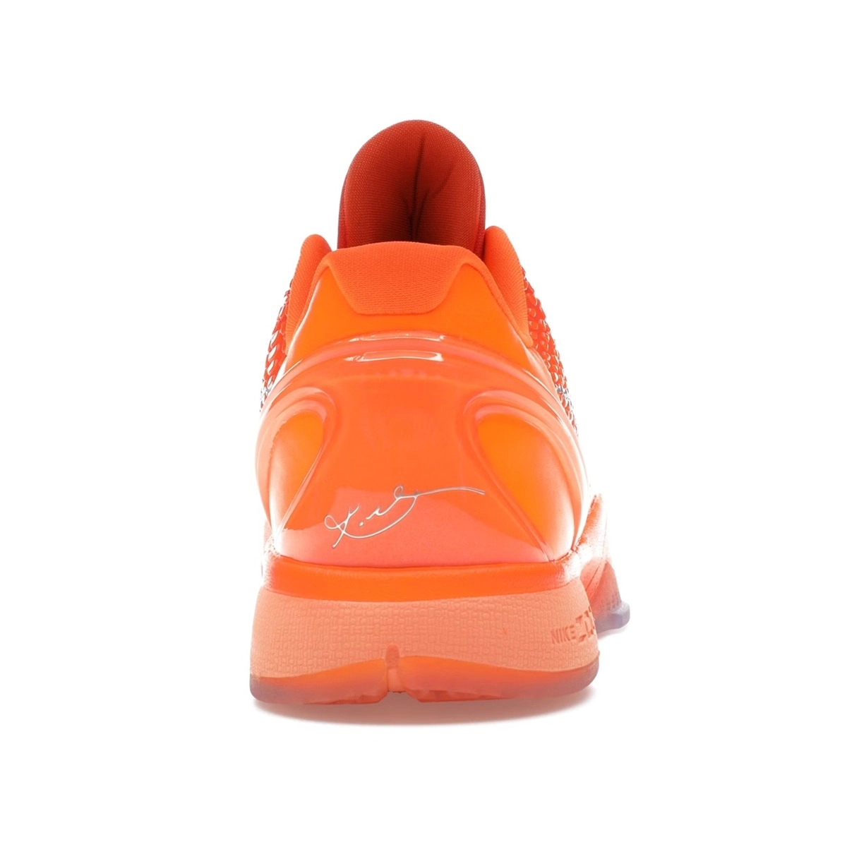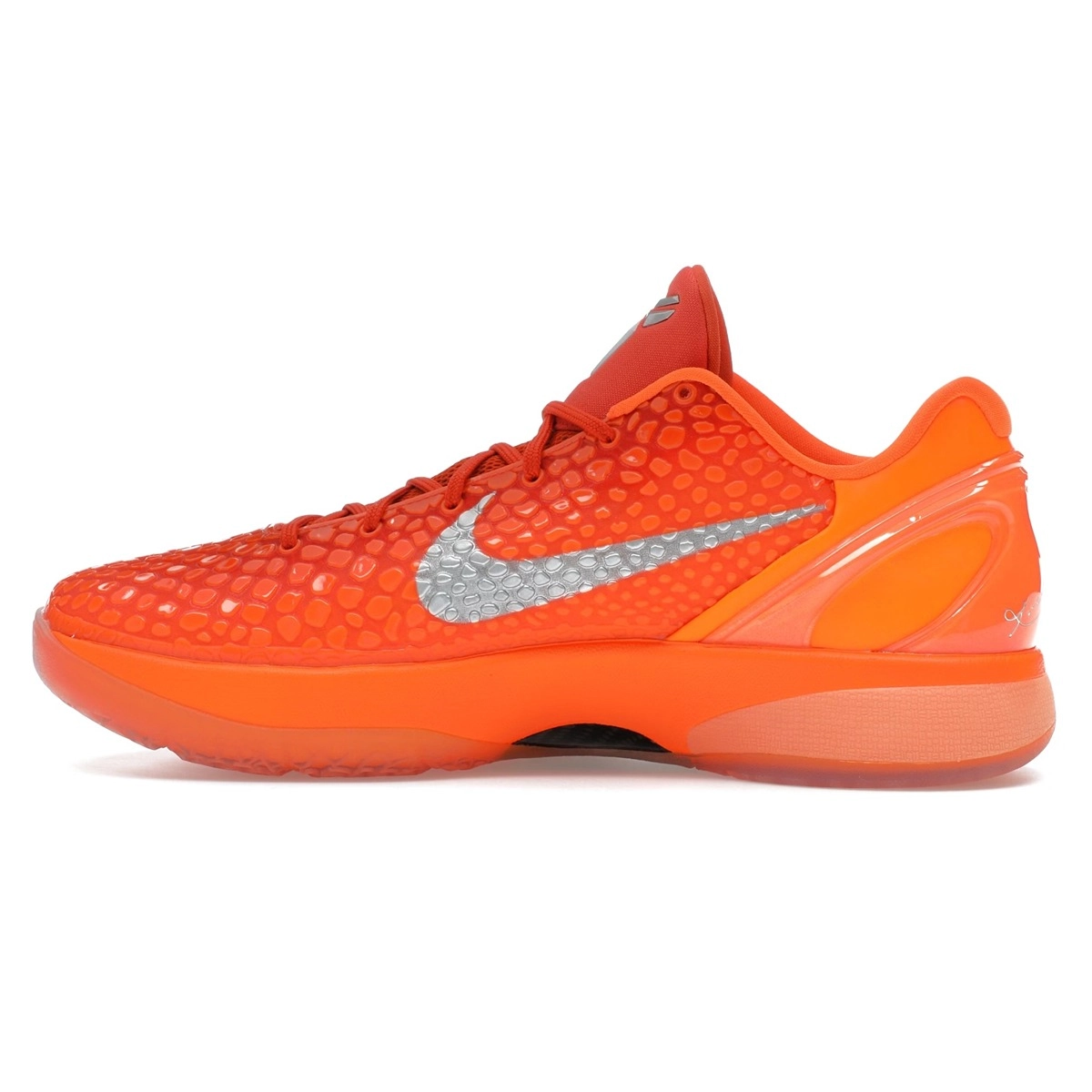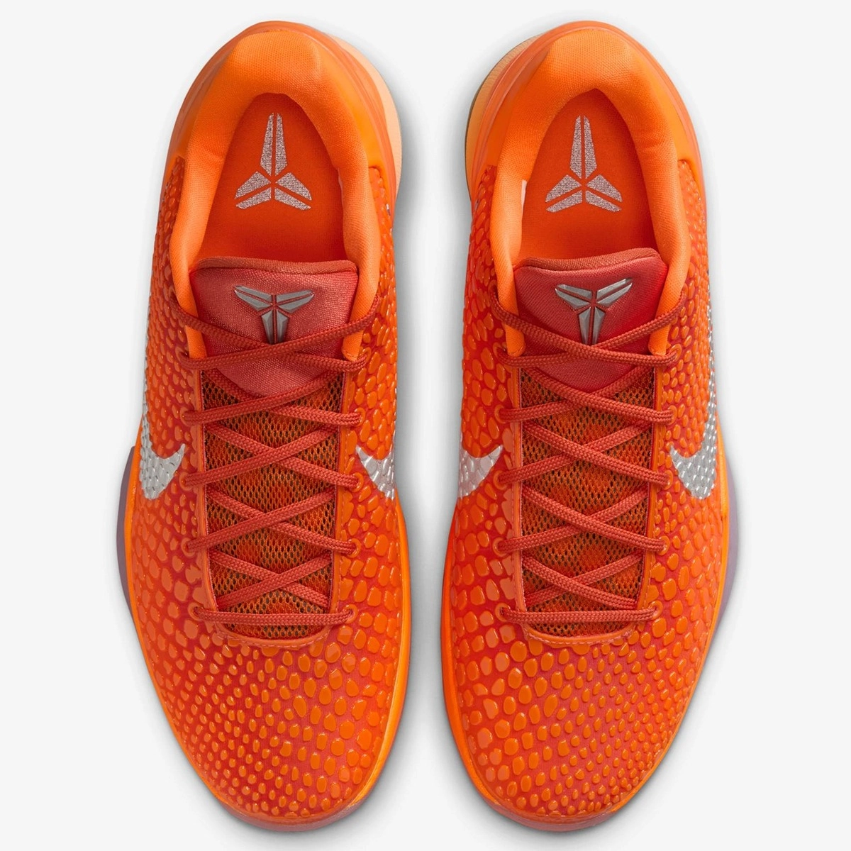 The Nike Kobe 6 Protro Total Orange is a powerful tribute to Kobe Bryant’s commitment to the game, especially his vocal support for women’s basketball. Inspired by the iconic moment Kobe sat courtside in a WNBA hoodie, this colorway brings high-impact energy through a bold mix of total orange, cosmic clay, and metallic silver. With its scaly upper and low-cut profile, the sneaker fuses the Mamba mentality with a design built for sharp movement and statement style.