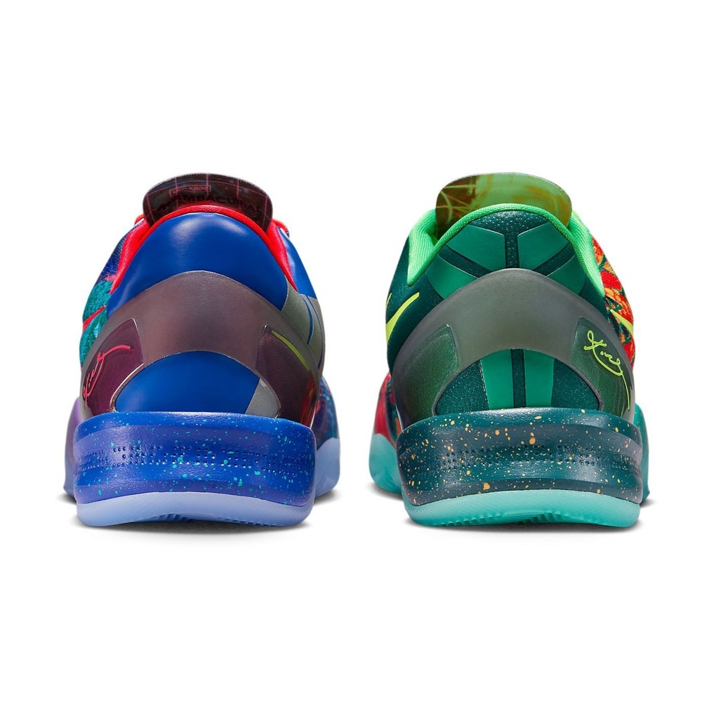 This Nike Kobe 8 Protro What The (2025) revives one of the most iconic and eclectic designs in the Kobe signature series. Staying true to the "What The" theme, this sneaker mashes up multiple iconic Kobe 8 colorways into one bold, eye-catching design. With mismatched color palettes on each shoe and a blend of graphics, materials, and prints, this release celebrates the rich legacy of Kobe Bryant’s eighth signature model.