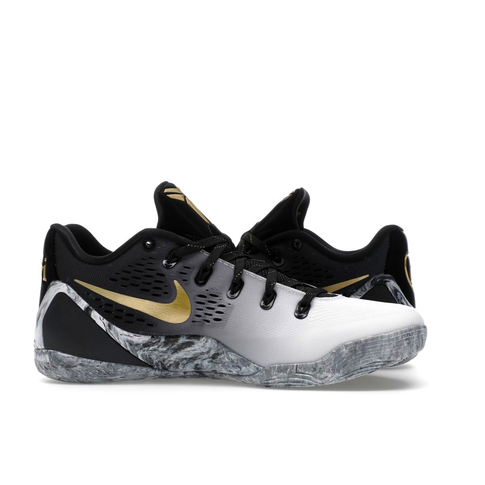 The Nike Kobe 9 EM Low Protro Mambacita stands out as a touching tribute celebrating Gigi Bryant’s legacy, bringing a beloved silhouette back with fresh, meaningful details. Sporting a dramatic gradient shift from white to black across its engineered mesh upper, this sneaker strikes a balance of elegance and athleticism. Distinct metallic gold accents, from the shimmering Swoosh to the detailed "Gigi" embroidery, enrich the design with subtle opulence.