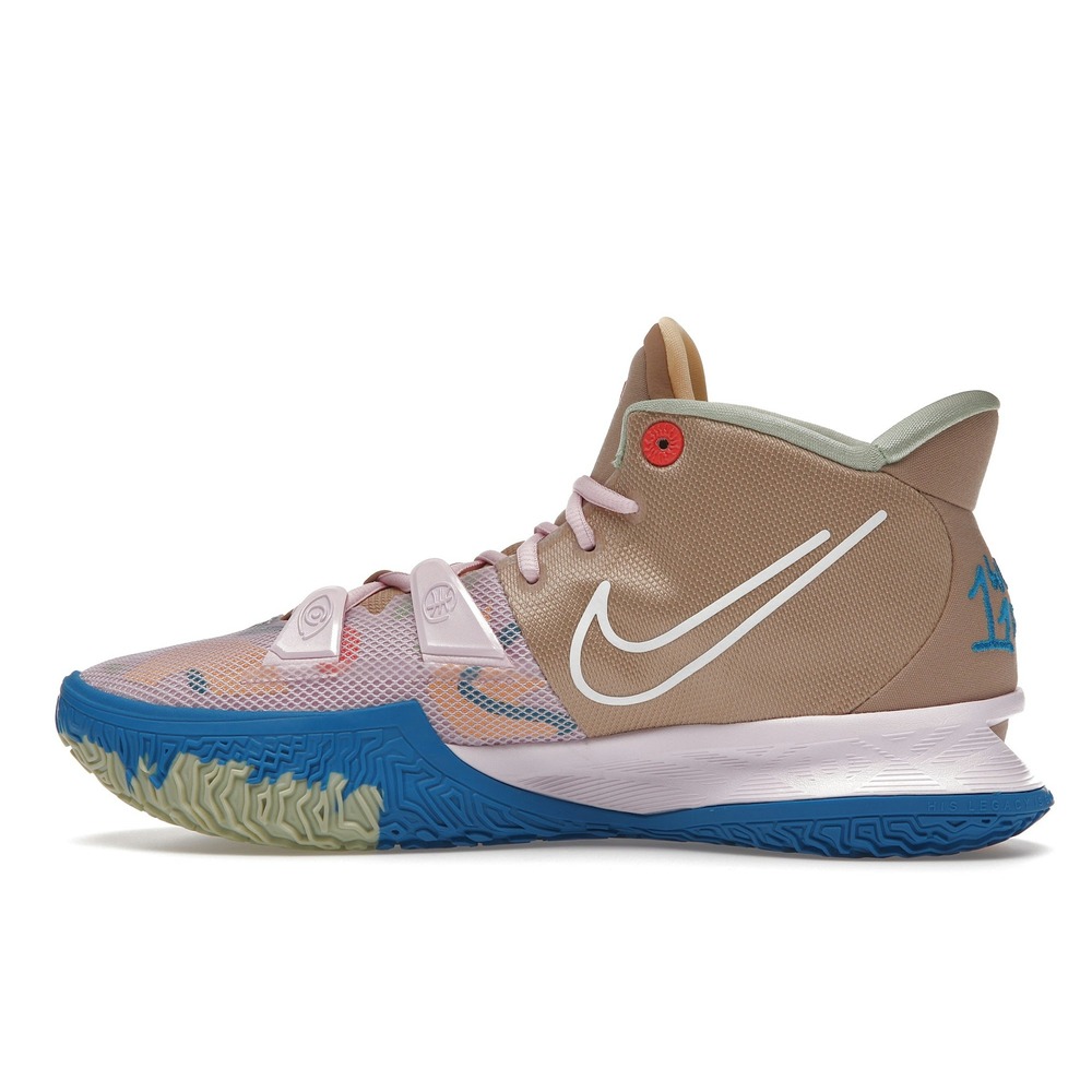 We think that the standout feature of the Nike Kyrie 7 1 World 1 People in Pink is its vibrant and eye-catching appearance. The shoe features a Regal Pink colorway with Hemp, Honey Dew, and white accents throughout, creating a bold and striking contrast. The Nike Kyrie 7 1 World 1 People Pink was released on September 3rd, 2021 at a retail price of $130.