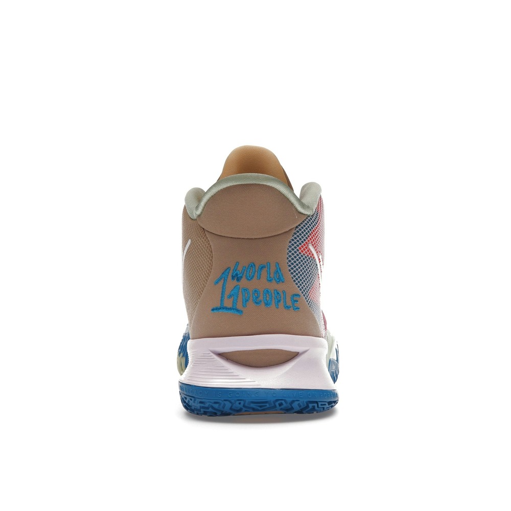 The Kyrie 7 1 World 1 People Pink features a Nike Air Zoom Turbo unit in the forefoot that provides responsive cushioning and support for quick cuts on the court. The shoe also has an updated outsole with a multi-angle blade pattern that provides traction and grip on the court.