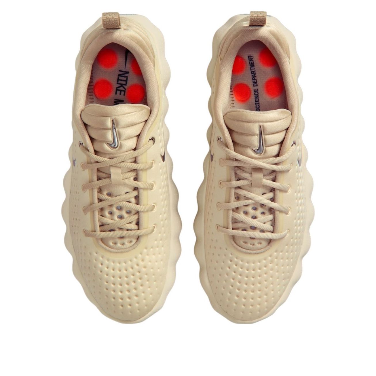 The Nike Mind 002 Light Khaki brings an earthy, grounded aesthetic to Nike's neuroscience-inspired Mind series. Featuring 22 sensory foam nodes developed in Nike's Science Department, this sneaker is scientifically engineered to activate sensory areas of the brain with every step. The Light Khaki and Desert Khaki tones create a versatile, nature-inspired palette that pairs effortlessly with any outfit, while subtle Hyper Crimson and Metallic Cool Grey accents add controlled energy. The breathable knit upper sits atop a plush foam midsole for responsive, all-day cushioning. Experimental yet grounded, the Mind 002 is where cutting-edge footwear science meets everyday wearability.