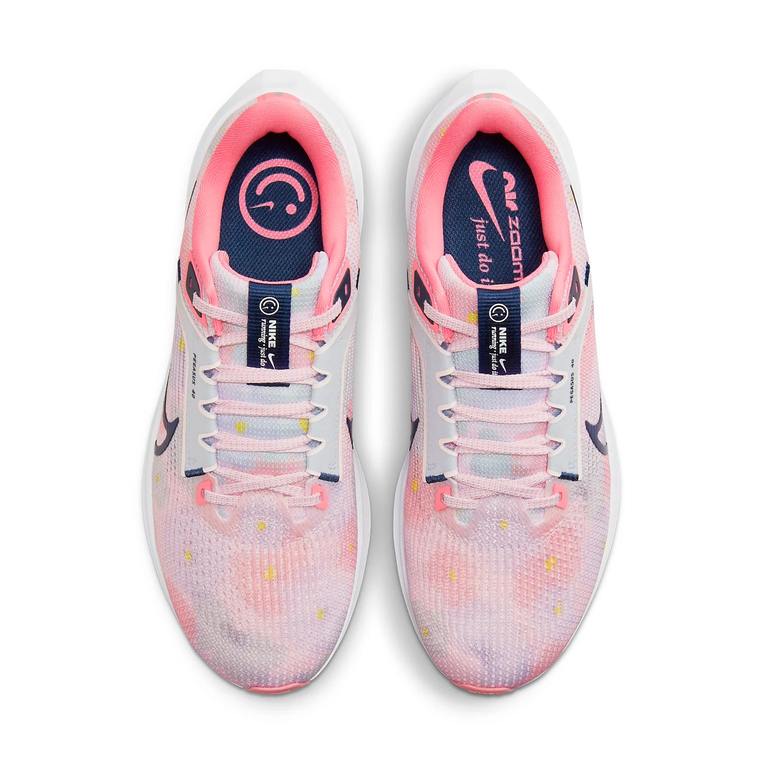Elevate your run with the Nike Pegasus 40 Premium Floral Watercolor Women’s Running Shoes. A celebration of comfort and performance, this special edition of the iconic Pegasus franchise boasts a unique floral watercolor design in Pearl Pink, Coral Chalk, White, and Midnight Navy.