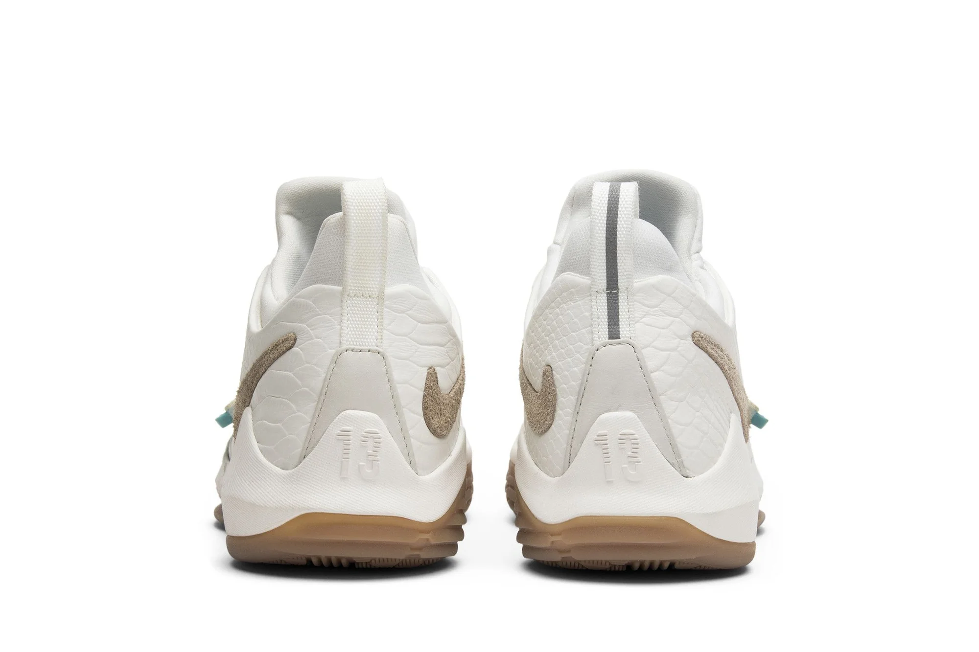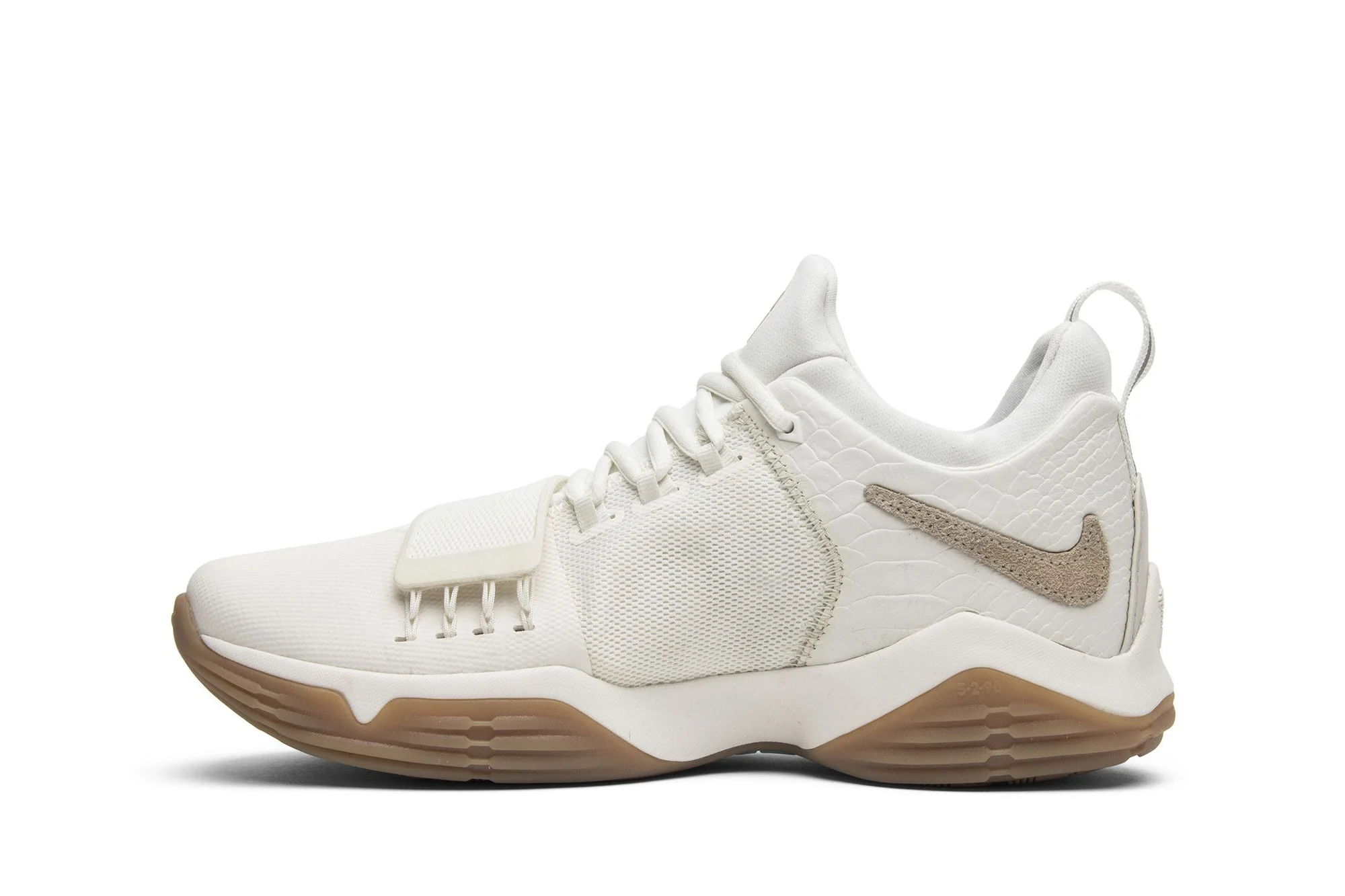 Paul George's signature PG 1 performance low-top was rendered in this premium-tooled 'Ivory' colorway in April 2017. The elevated look is distinguished by cream-colored synthetic python leather side panels and a matching mesh toe cap and forefoot strap. Beige suede Swooshes, a white Zoom midsole, and a gum rubber outsole complement the neutral aesthetic, while a single blue tab on the strap provides a pop of color up top. Experience all-day comfort and timeless style with this versatile Nike sneaker, engineered to keep up with your every move. Blending iconic design with responsive cushioning, it’s perfect for everything from morning commutes to weekend adventures. Whether you’re dressing up or keeping it casual, this sneaker delivers the perfect balance of performance, durability, and everyday style—so you can stay sharp, confident, and comfortable all day long.